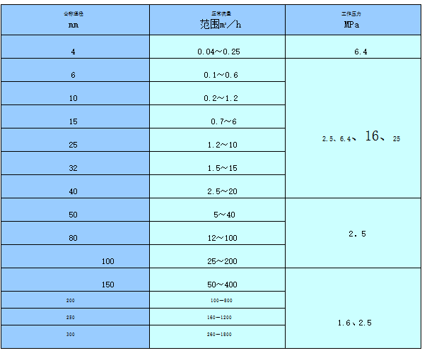 四、流量范围与工作压力