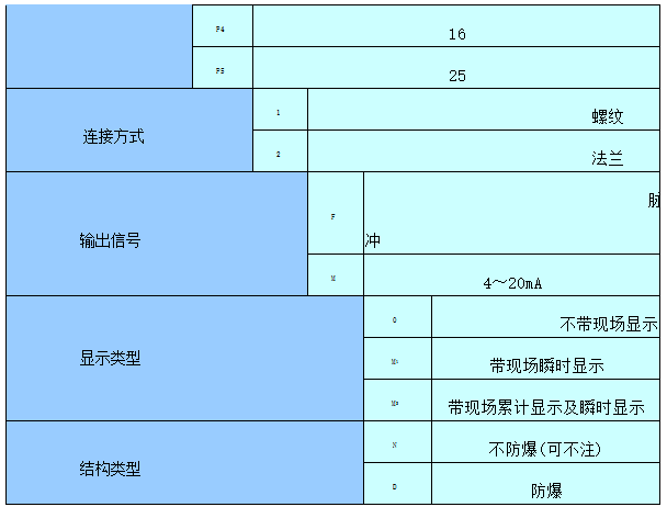 五、型号规格表