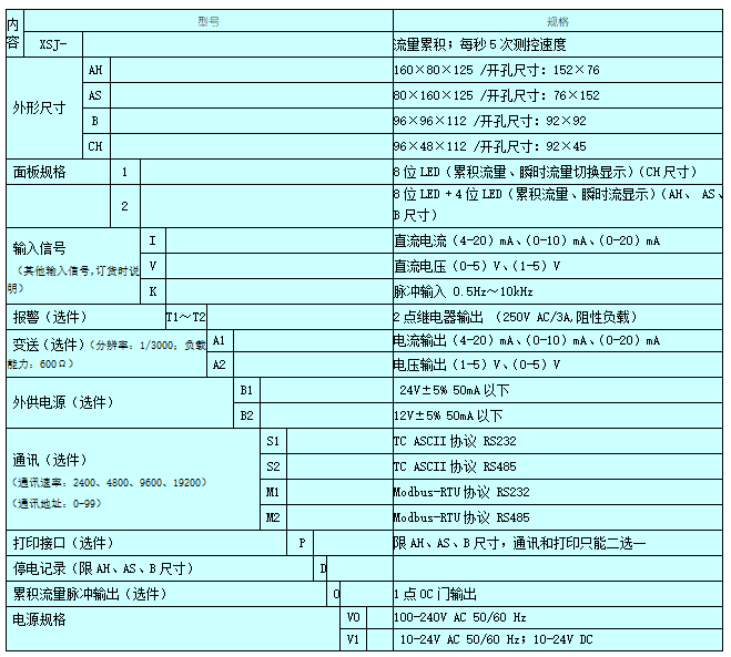 5、 可选配累积量脉冲输出功能。